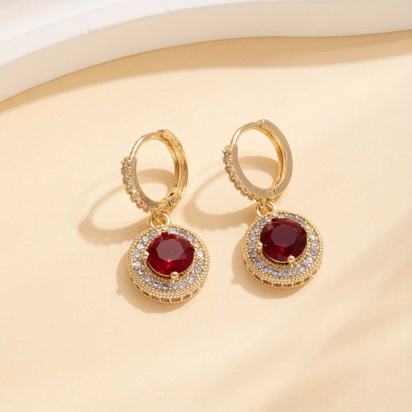 🎁 50% sleva na všechny produkty !✨Kulaté náušnice z červených drahokamů💃